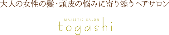 岡山県中区にある美容室togashi(トガシ)では、髪や頭皮の様々なお悩み、白髪染めのお悩み、アレルギーなどのトラブル、年齢とともにでてくる不安などを解決する大人の女性のためのヘアサロンです。