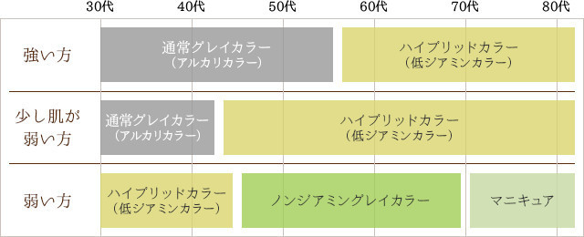 例)普通のカラーで染めると痛み・かゆみがひどい方、ジアミンかぶれの方(要パッチテスト)
